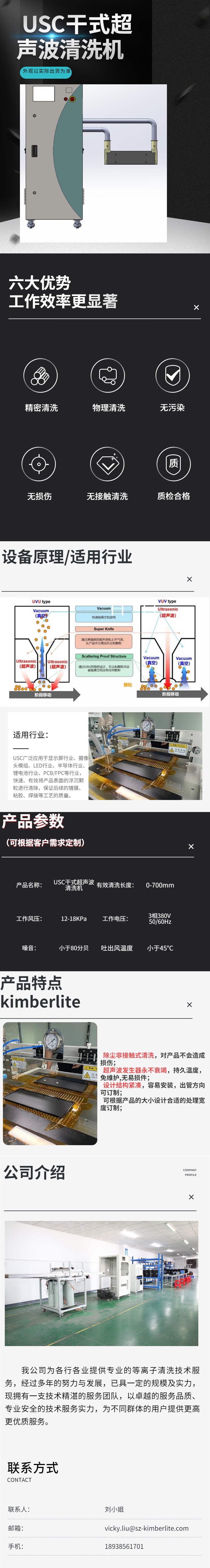 干式超聲波清洗機(jī)USC可以清洗各種表面復(fù)雜的產(chǎn)品,采用無(wú)水無(wú)接觸的清洗方式,廣泛運(yùn)用于于顯示屏行業(yè)、攝像頭模組、LED行業(yè)、半導(dǎo)體行業(yè)、鋰電池行業(yè)、PCB/FPC等行業(yè),快速、有效將產(chǎn)品表面的浮沉顆粒進(jìn)行清除,保證后續(xù)的鍍膜、粘膠、焊接等工藝的質(zhì)量。