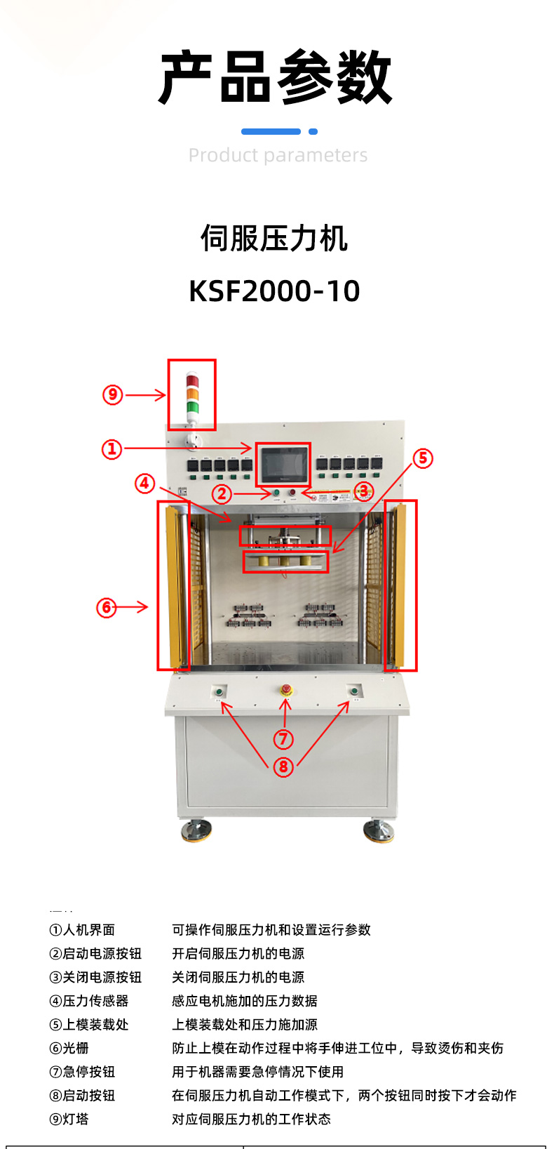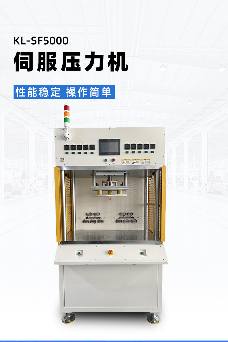 精密數(shù)控伺服電子壓力機(jī)簡稱伺服壓力機(jī)、電子壓力機(jī),其工作原理是由伺服電機(jī)驅(qū)動H精度滾珠絲桿進(jìn)行精密壓力裝配作業(yè),全程實現(xiàn)壓裝力與壓入深度的閉環(huán)控制。另可配置加熱、實時壓力曲線顯示、多工位、掃碼、自動化等功能。
