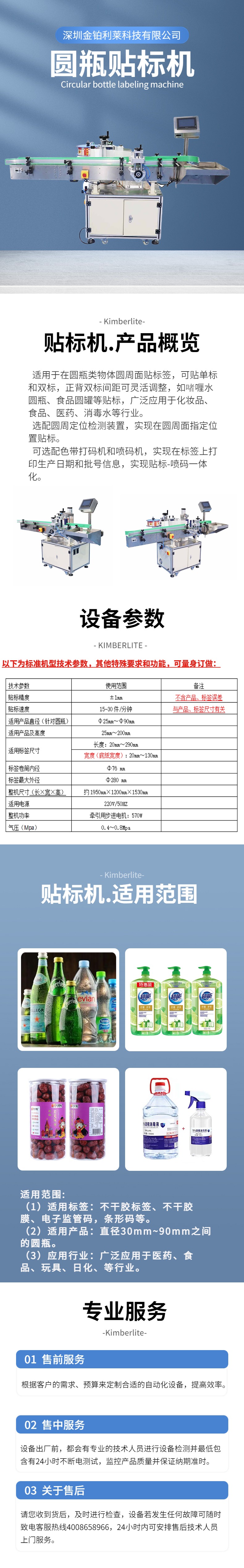 全自動(dòng)圓瓶貼標(biāo)機(jī)適用于在圓瓶類(lèi)物體圓周面貼標(biāo)簽,可貼單標(biāo)和雙標(biāo),正背雙標(biāo)間距可靈活調(diào)整,如啫喱水圓瓶、食品圓罐等貼標(biāo),廣泛應(yīng)用于化妝品、食品、醫(yī)藥、消毒水等行業(yè)。
