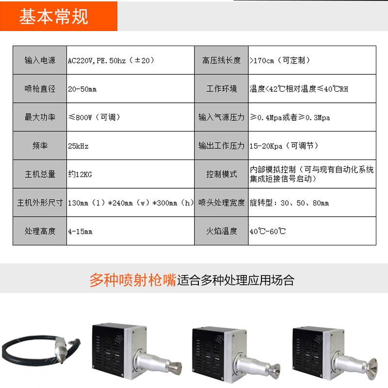 (1)采用低溫等離子體對物體表面,進(jìn)行等離子處理,等離子處理的面積大小可以根據(jù)客戶產(chǎn)品的實際,配合適的槍頭,如2mm-80mm的直噴槍頭或旋轉(zhuǎn)槍頭